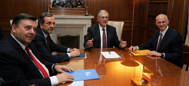 Η σημερινή δήλωση του προέδρου του ΛΑΟΣ Γιώργου Καρατζαφέρη ότι δεν προτίθεται να υπογράψει έγγραφες δεσμεύσεις για τη νέα δανειακή σύμβαση επικαλούμενος λόγους αξιοπρέπειας εξέπληξε τον κ. Λουκά Παπαδήμο. Οπως ανέφεραν στενοί του συνεργάτες στο iefimerida.gr η εξέλιξη αυτή καθιστά αμφίβολη την αυριανή σύσκεψη και εξετάζεται το ενδεχόμενο είτε να μεταφερθεί μετά τη σύνοδο κορυφής της Ε.Ε. τη Δευτέρα, είτε ακόμη και να ματαιωθεί.