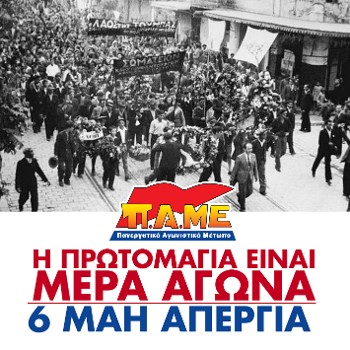 Απεργιακές αποφάσεις για τις 6 Μάη έχουν ήδη πάρει τα εξής Εργατικά Κέντρα στην Αττική: Εργατικό Κέντρο Αθήνας, Εργατικό Κέντρο Πειραιά και Εργατικό Κέντρο Λαυρίου - Ανατολικής Αττικής.