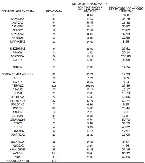 Τέλος, 177 κρούσματα βρίσκονται υπό διερεύνηση.