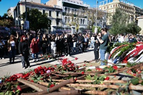 Νωρίτερα χτες το πρωί, με συνθήματα και παλμό υποδέχτηκε η νεολαία τις αντιπροσωπείες της ΚΕ του ΚΚΕ και του ΚΣ της ΚΝΕ, που επίσης κατέθεσαν στεφάνια στον χώρο του Πολυτεχνείου.