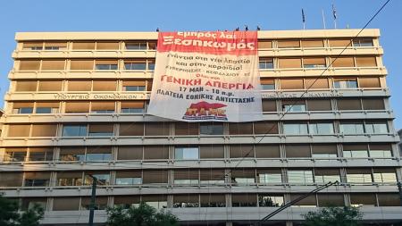 Κατάληψη στο υπουργείο Οικονομικών πραγματοποιούν από νωρίς το πρωί της Πέμπτης μέλη του ΠΑΜΕ, που απέκλεισαν τις εισόδους του κτηρίου και κρέμασαν πανό.Πρόκειται για το κεντρικό κτήριο του υπουργείου Οικονομικών στο Σύνταγμα, εκεί όπου βρίσκεται το γραφείο του υπουργού Ευκλείδη Τσακαλώτου.